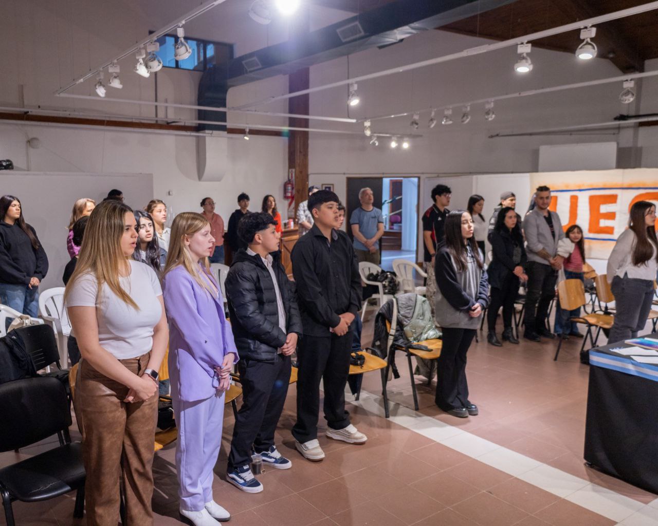 La Secretaría de Cultura y Educación de la Municipalidad de Ushuaia, a través de la Coordinación de Juventudes, acompañó en el Foyer “Ego Pereda” de la Casa de la Cultura Enriqueta Gastelumendi el acto de asunción de las nuevas autoridades de la Unión de Estudiantes Secundarios de Ushuaia.