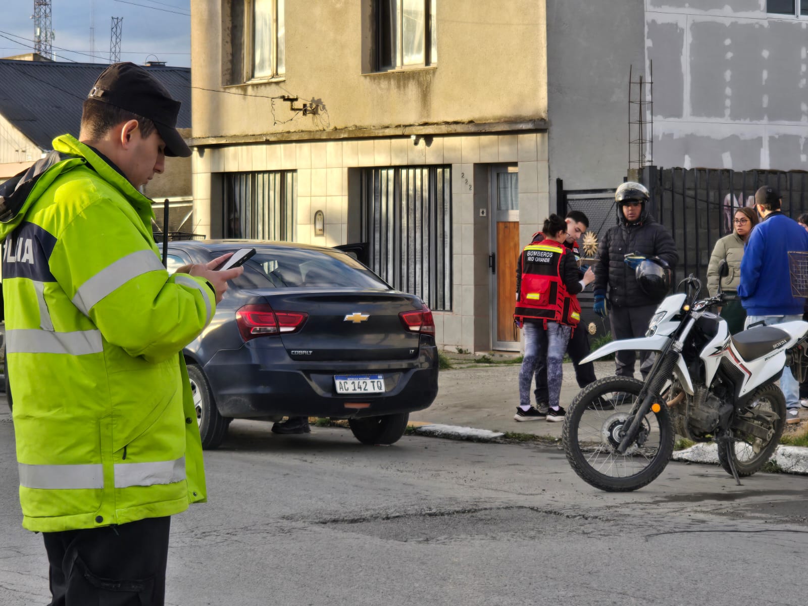 Personal de la Policía Provincial, dependiente de la Comisaría Tercera, intervino durante la mañana de este 14 de marzo en un siniestro vial ocurrido en la intersección de la Ruta Nacional 3 y calle Santa Cruz, en la ciudad de Río Grande.