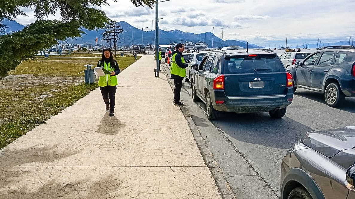 Personal de la Dirección de Tránsito de la Municipalidad de Ushuaia realizó un operativo de control en la avenida Maipú, en inmediaciones de la Plaza Malvinas.