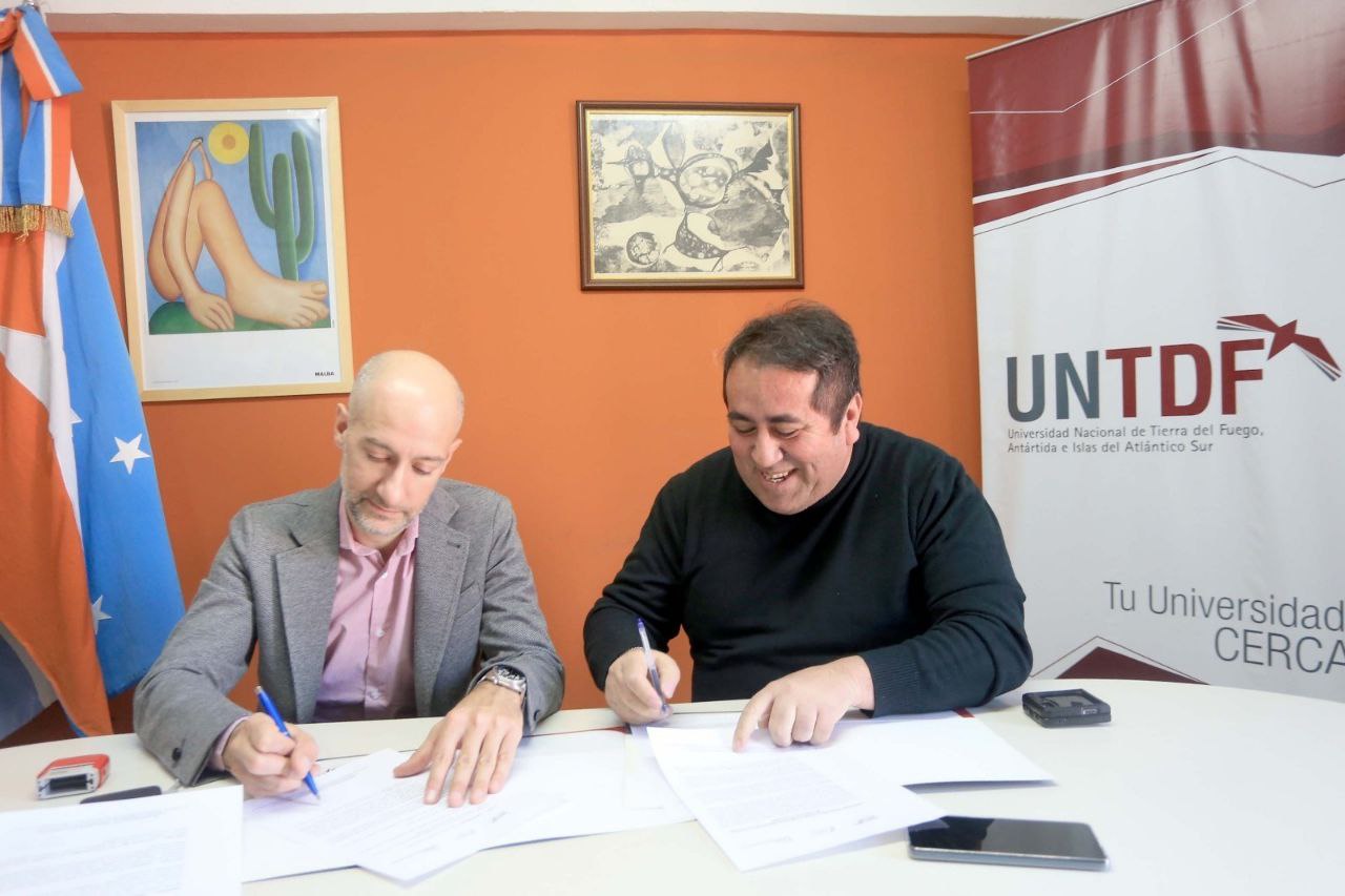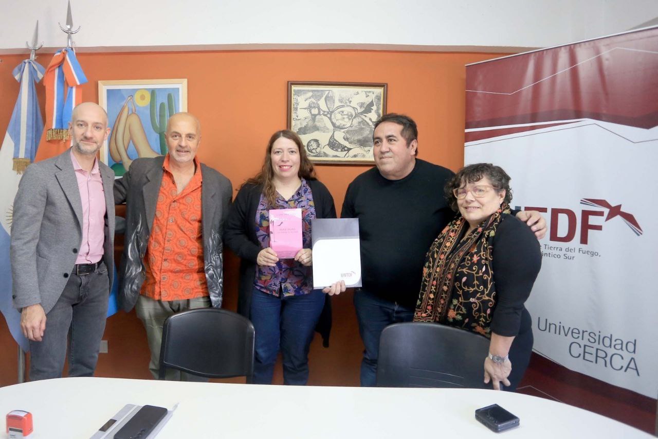 De la ceremonia de firma fueron parte el rector de la UNTDF, Mariano Hermida, la subsecretaria de Extensión, Vinculación y Servicios, María Ayelén Martínez, y el subsecretario de Promoción Educativa, José Luis Paredes, en representación de la Municipalidad de Ushuaia. Dicho convenio permitirá que la propuesta que articula lectura, escritura, creatividad, cocina y narración de cuentos “Cocineritos, Cuentos y Relatos” llegue al edificio de la casa de altos estudios.