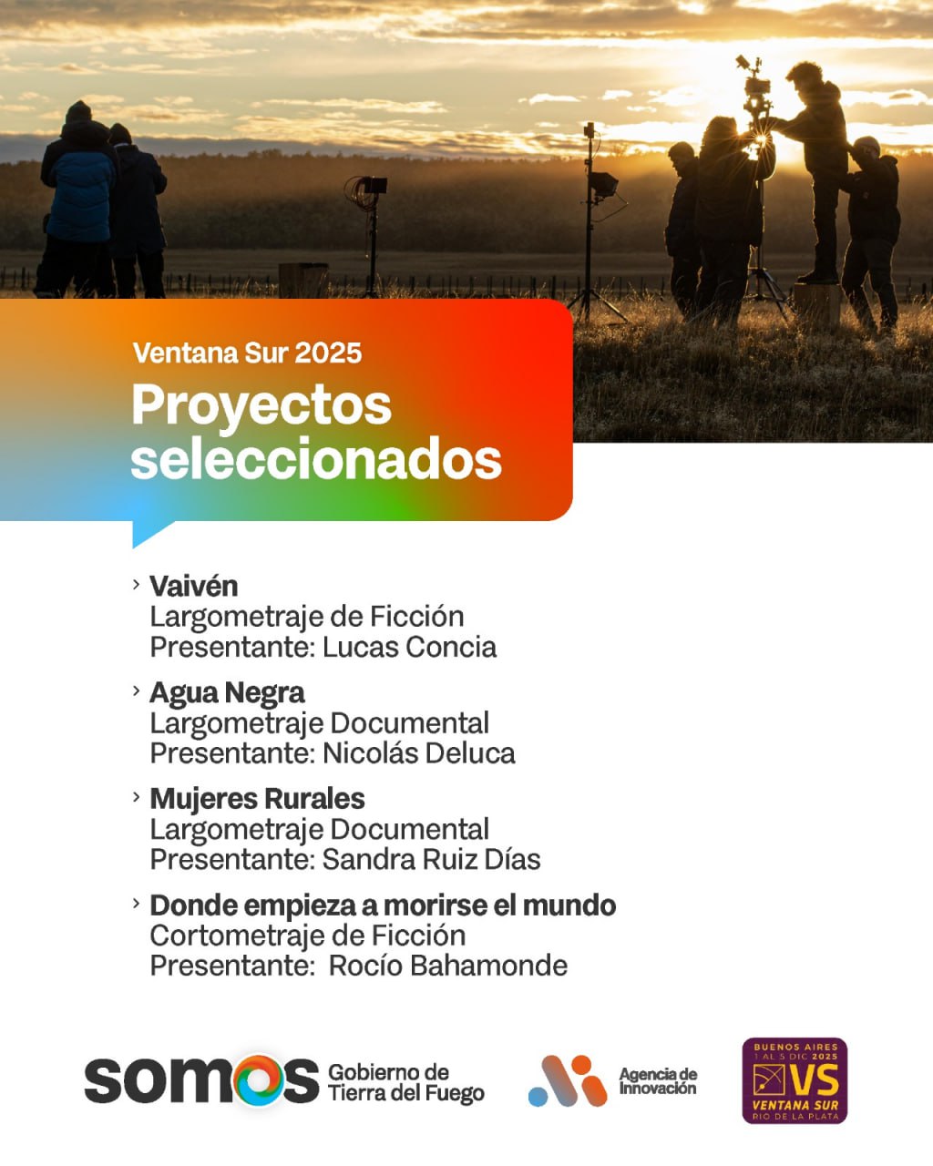 La Agencia de Innovación de Tierra del Fuego, anunció los cuatro proyectos seleccionados que representarán a la provincia en Ventana Sur 2025, el mercado audiovisual más importante de América Latina, que se llevará a cabo del 1 al 5 de diciembre en la ciudad de Buenos Aires.