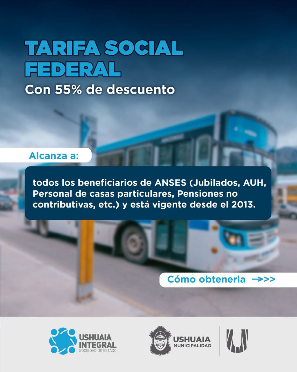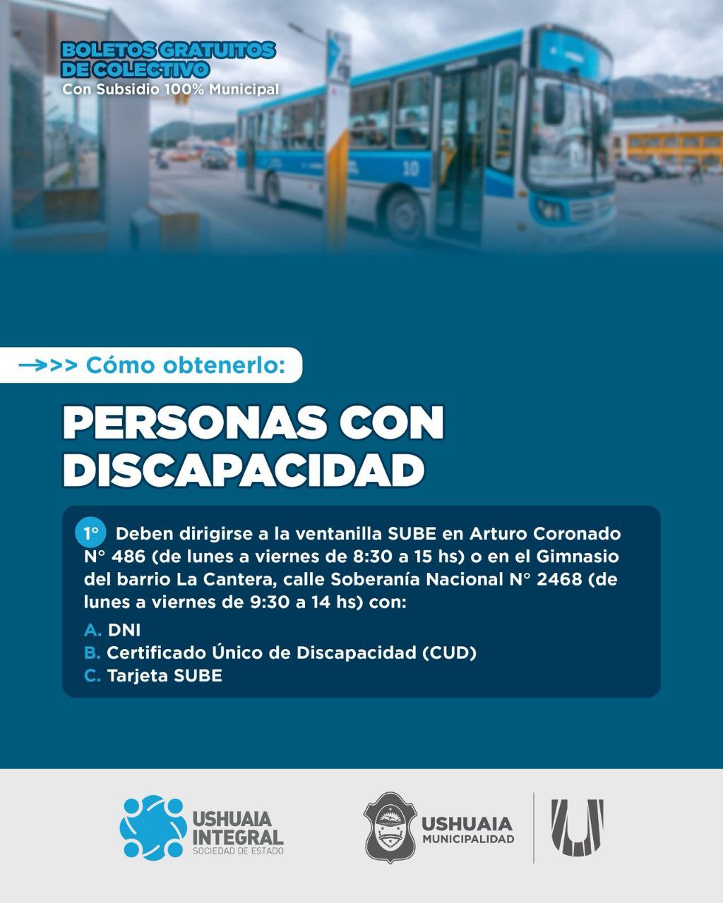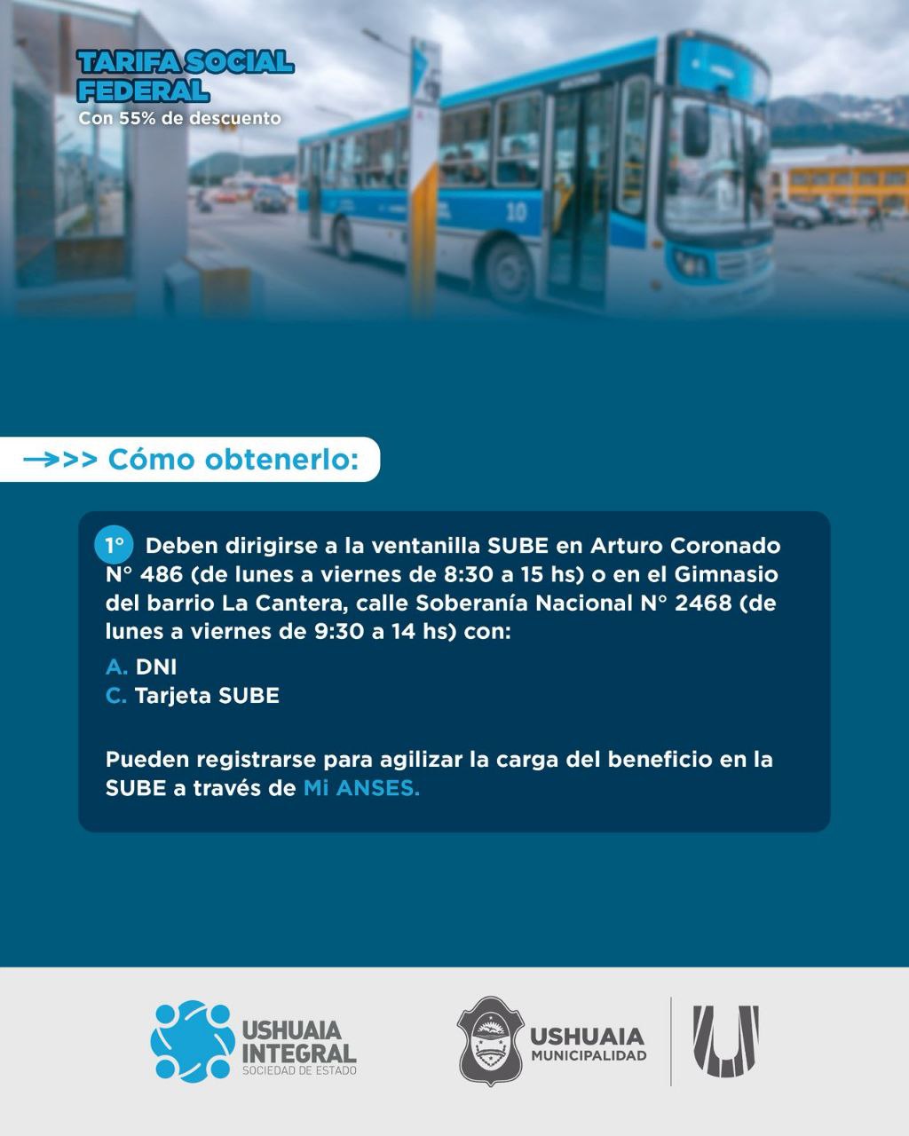 La Municipalidad de Ushuaia informa a vecinos y vecinas que a partir del 2 de marzo se podrá gestionar el acceso al boleto gratuito estudiantil del servicio de transporte público de colectivos que brinda la empresa Ushuaia Integral Sociedad del Estado (UISE). Alcanza a estudiantes de los niveles primario, secundario, terciario y universitario. Se trata de un subsidio del 100% del valor del boleto tanto para quienes renueven el beneficio como para quienes tramiten el carnet correspondiente por primera vez.