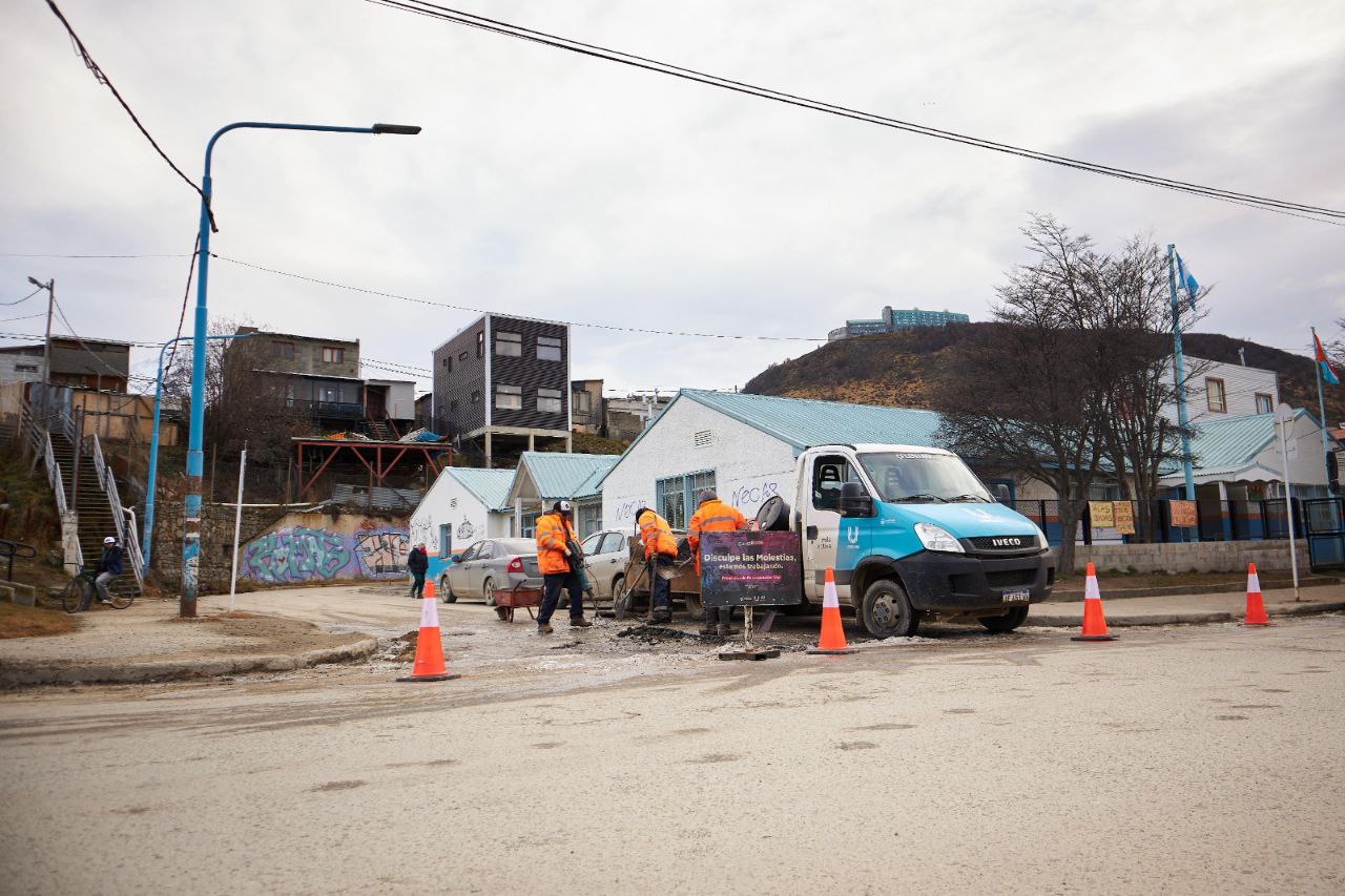 En Ushuaia, la Municipalidad avanza con tareas de bacheo y mantenimiento de distintos sectores