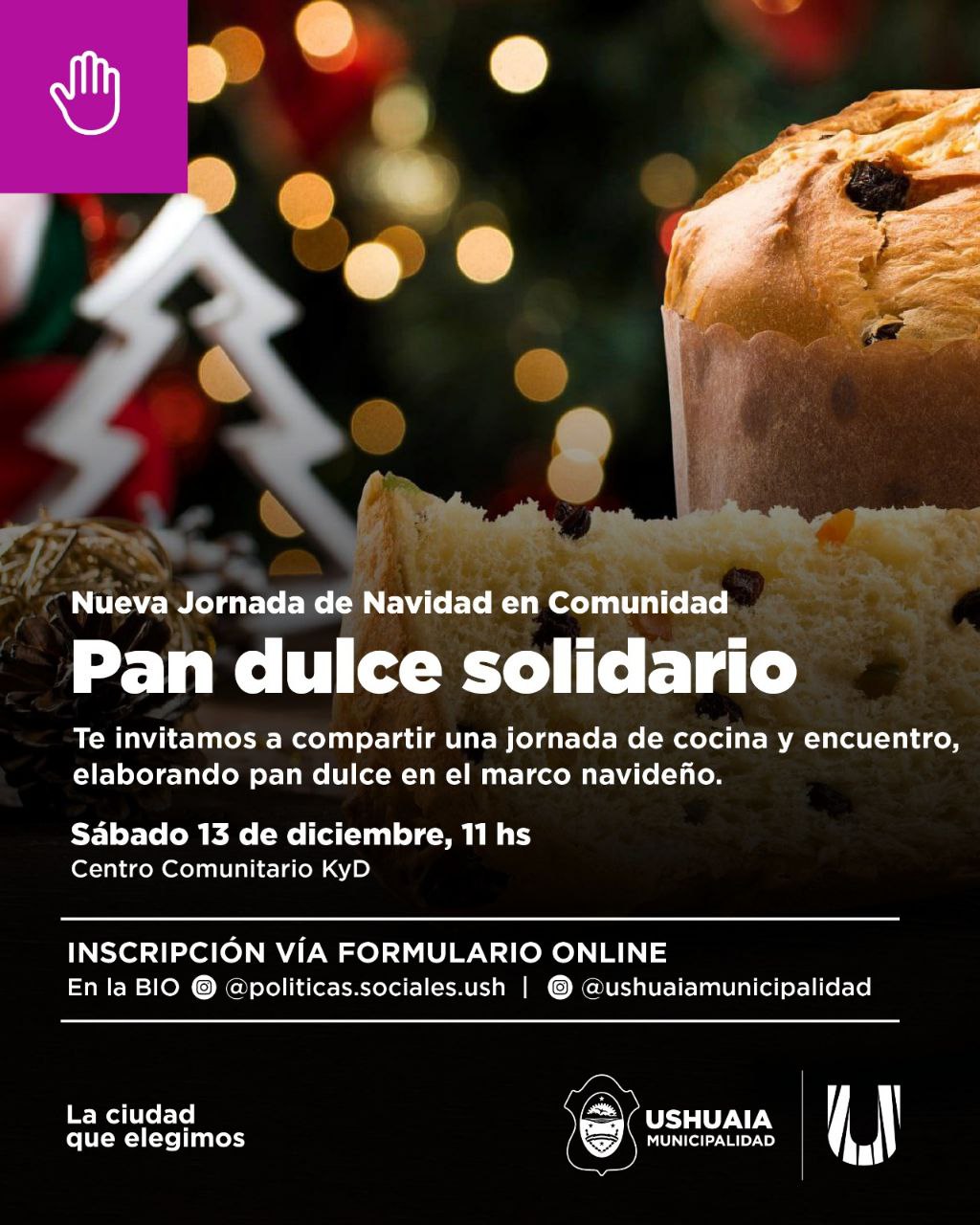 Se trata de una propuesta gratuita, con cupos limitados. Los interesados en participar deberán inscribirse a través del formulario online en el link https://inscripciones.website/pan-dulce-solidario-navidad-en-comunidad, disponible en el Instagram de la Secretaría de Políticas Sociales @politicas.sociales.ush.
