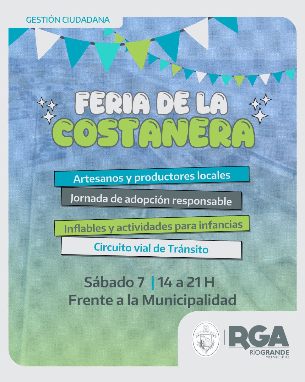 El Municipio de Río Grande, a través de la Secretaría de Gestión Ciudadana, invita a vecinos y vecinas a participar de la “Feria de la Costanera”, una propuesta que reúne producción local, actividades recreativas y espacios para toda la familia.