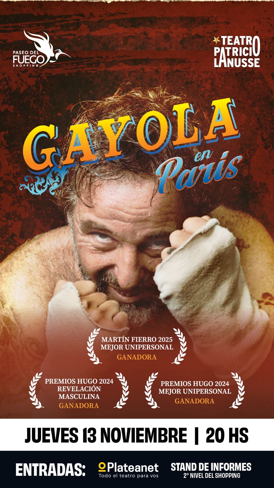 Patricio Coutoune, reconocido actor y director teatral, llega a la ciudad más austral del mundo para presentar su aclamada obra “Gayola en París”. La función se llevará a cabo el jueves 13 de noviembre a las 20 horas en el Teatro Patricio Lanusse, ubicado en el Paseo del Fuego. La obra ha sido un éxito en su recorrido por distintas ciudades y ha recibido múltiples premios, incluyendo una reciente nominación como mejor unipersonal en los prestigiosos premios María Guerrero.