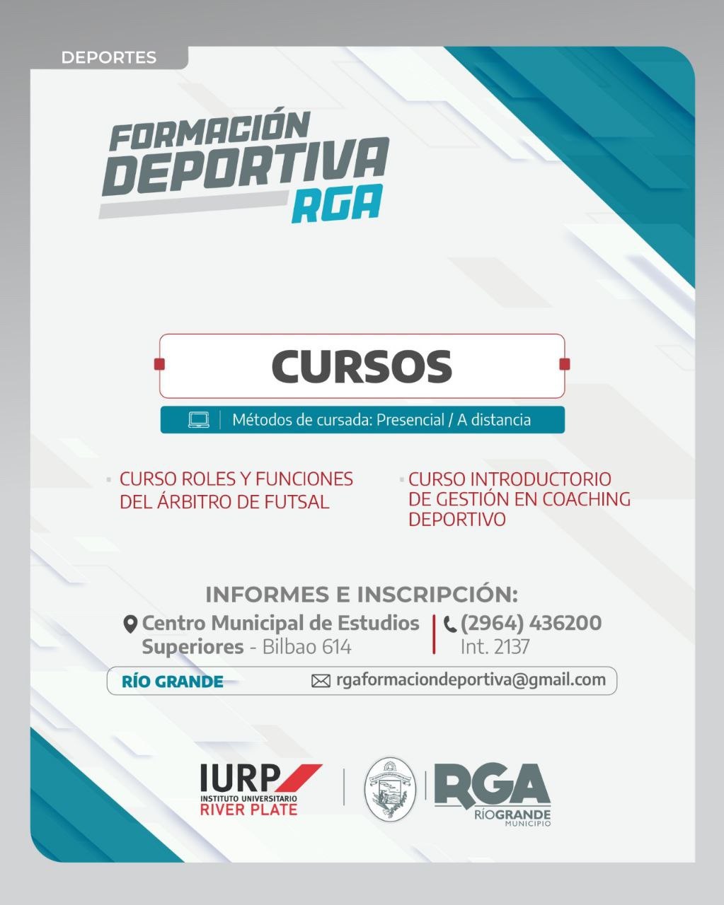 En el marco de las políticas públicas que impulsa el fortalecimiento de la educación y la formación deportiva, el Municipio de Río Grande informa que se encuentran abiertas las inscripciones a los Cursos de Formación del Instituto Universitario River Plate (IURP), destinados a vecinas y vecinos de la ciudad.