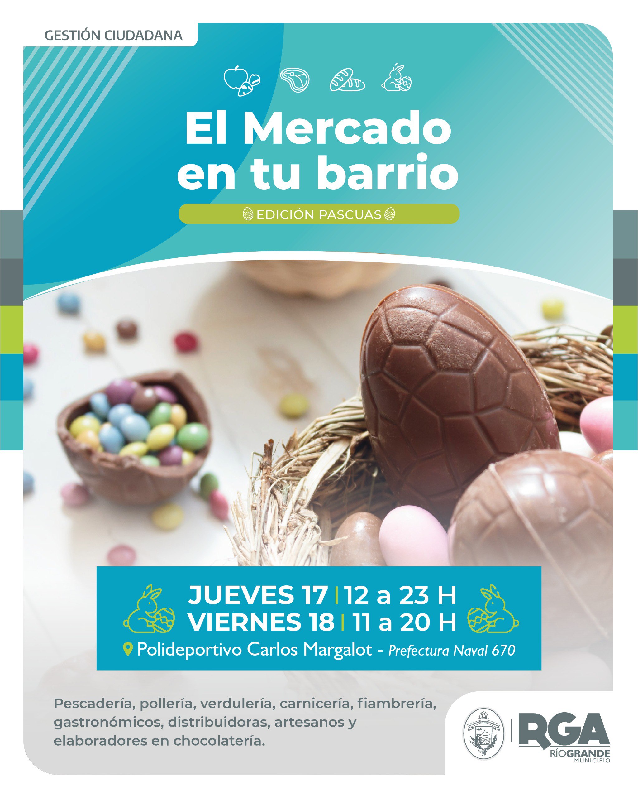 El Municipio, a través de la Secretaría de Gestión Ciudadana, llevará adelante una nueva edición de “El Mercado en tu Barrio” Edición Pascuas. El mismo se realizará el jueves 17 de abril de 12 a 23 horas y el viernes 18 de 11 a 20 horas, en las instalaciones del Polideportivo Carlos Margalot.