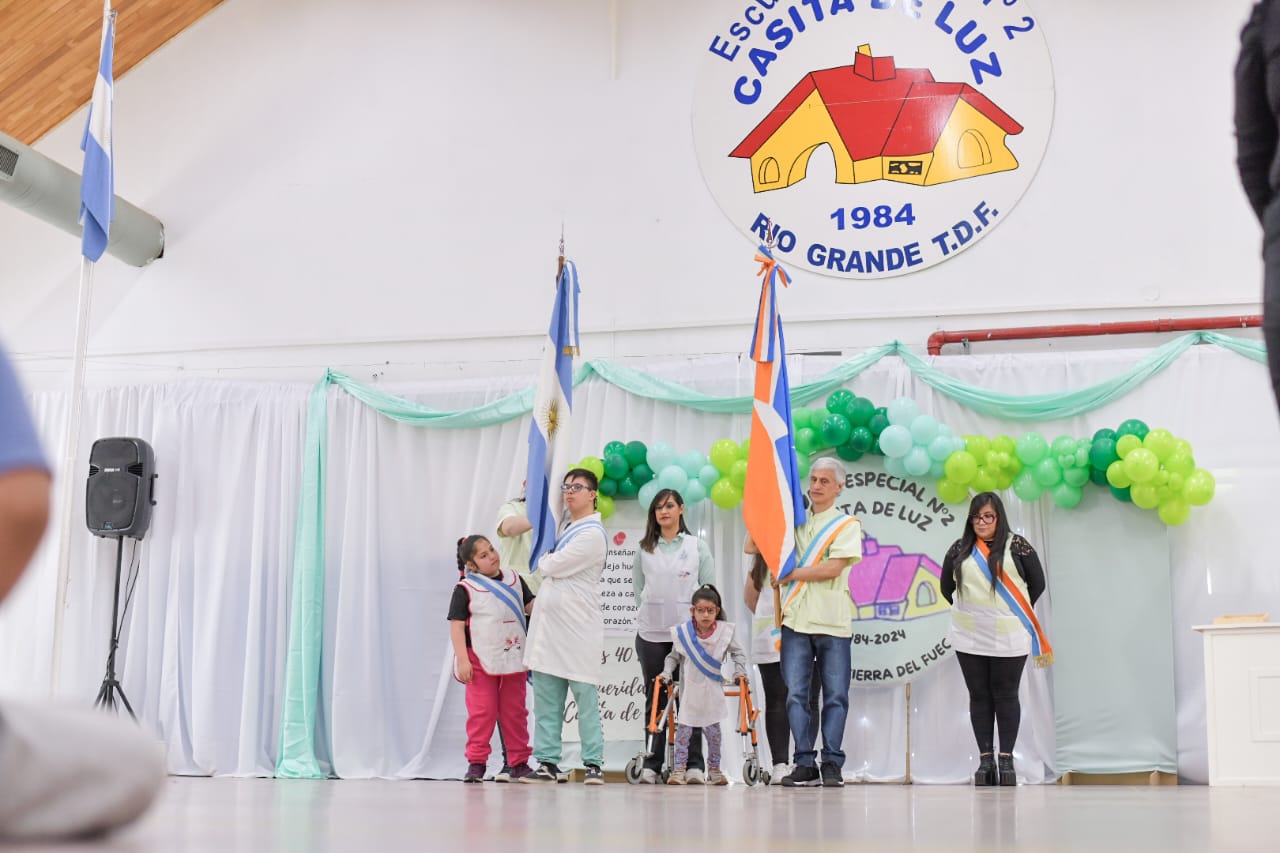 La Escuela Especial N°2 “Casita de Luz” de la ciudad de Río Grande celebró su 40° Aniversario junto a su comunidad educativa. El ministro de Educación de la provincia de Tierra del Fuego, AeIAS, Pablo López Silva, participó del acto junto a la secretaria de Gestión Educativa, Silvina Solohaga y al secretario de Representación Política del Gobierno provincial, Federico Giménez, quienes hicieron entrega de la placa conmemorativa y de presentes para la institución.