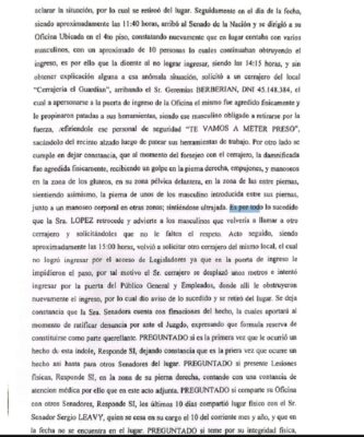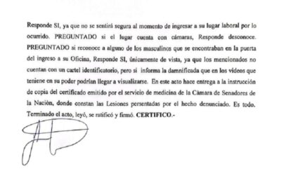 Tras la constatación médica, la senadora López realizó la denuncia penal contra sus agresores.