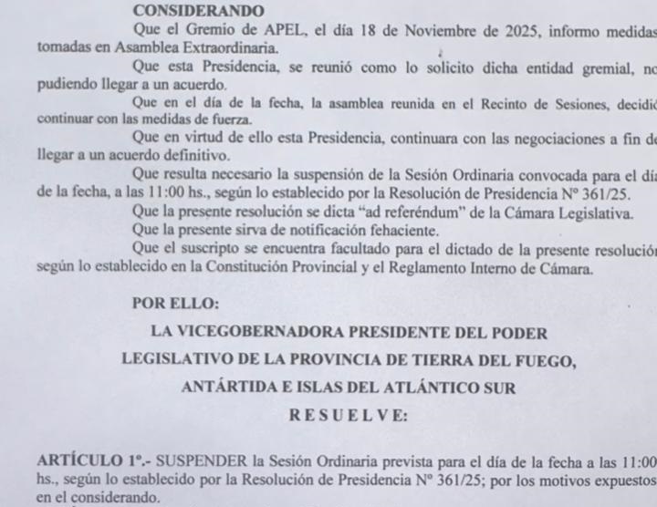 Para este miércoles estaba prevista la sesión ordinaria de la Legislatura Provincial, y la misma quedó suspendida luego de que trabajadores legislativos de planta permanente (enrolados en el gremio de APEL), iniciaran una medida de fuerza dentro del edificio, en reclamo por la falta de un acuerdo salarial.