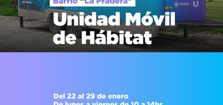 La Secretaría de Hábitat y Ordenamiento Territorial de la Municipalidad de Ushuaia informa que la unidad móvil de atención territorial estará presente desde hoy en barrio La Pradera, atendiendo la demanda del lugar y otros sectores de Andorra, con el objetivo de acercar el Estado a los vecinos y vecinas y facilitar la realización de trámites vinculados a la regularización habitacional.