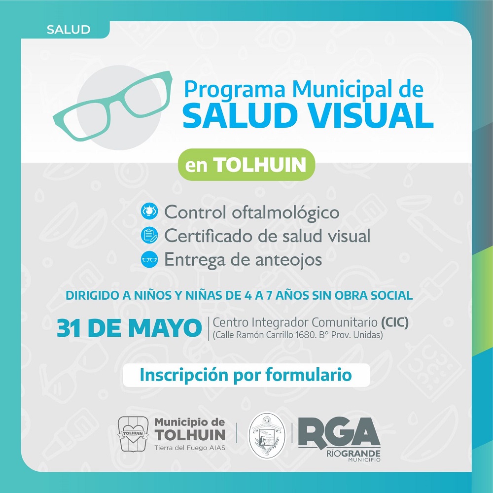 Estos controles de la salud visual serán para niños y niñas tolhuinenses que tengan entre 4 y 7 años. Se llevará a cabo el viernes 31 de mayo, en el CIC. El objetivo es garantizar el acceso equitativo e igualitario a la salud. Se hará por un un convenio entre este Municipio y el de Río Grande.