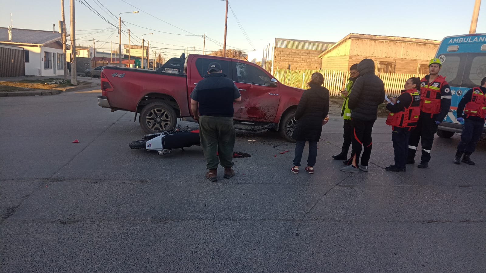 Los vehículos involucrados fueron una camioneta marca Toyota modelo Hilux conducida por Emilio David Viñayo, quien iba por Yrigoyen; y una motocicleta marca Honda que se dirigía por la otra arteria, al mando de Franco Acosta (24), acompañado por una joven.