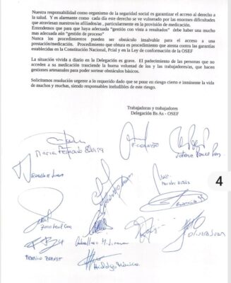 En una entrevista realizada este jueves, comenzó señalando que a esta nota la firman trabajadores de la OSEF en Bs As. “son compañeros míos de trabajo que se desempeñan en la delegación Buenos Aires, que están en un estado de desesperación porque ya no saben cómo actuar frente a decisiones que ha tomado. Han tomado desde la institución con respecto a los las compras de medicamentos en Buenos Aires. Para convengamos que los afiliados que están derivados se los deriva desde desde Ushuaia, se les autoriza el médico de la obra social los autoriza a hacer tratamientos allá.