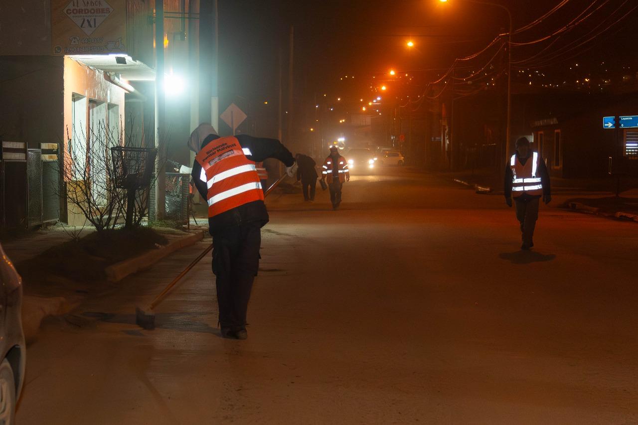 Dando continuidad a las tareas de limpieza de las calles de la ciudad que lleva adelante la Municipalidad de Ushuaia a partir de la mejora de las condiciones climáticas, personal de la Secretaría de Ambiente y Desarrollo Sustentable trabajó en las calles 12 de Octubre y Fuegia Basket.