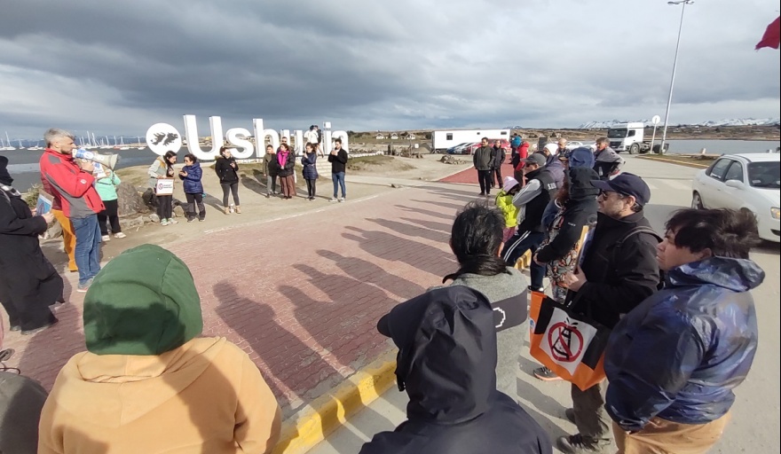 Integrantes de la Comunidad Costera de Tierra del Fuego, parte de la Red de Comunidades Costeras del país, participaron de las manifestaciones como parte de un nuevo “Atlanticazo”, en contra de las explotaciones y extracciones de hidrocarburos en el mar.