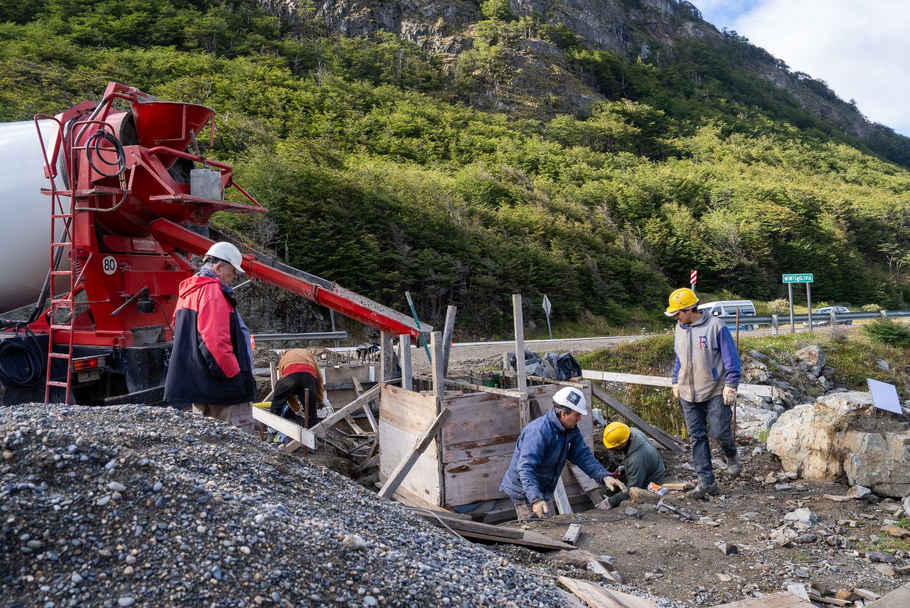 Trabajos de hormigonado donde funcionará el nuevo puesto de control de Ushuaia