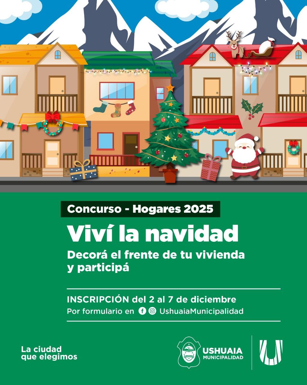Los interesados en participar podrán inscribirse del 2 al 7 de diciembre en el link https://inscripciones.website/concurso-vivi-la-navidad-2025/ disponible en las redes oficiales de la Municipalidad de Ushuaia, @culturayeducacionush y @politicas.sociales.ush.