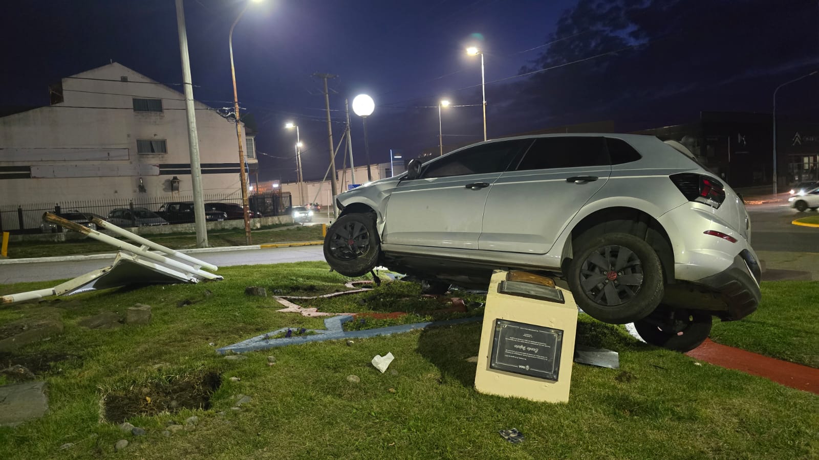 Un violento siniestro vial sucedió a las 5 de la madrugada de este jueves en Río Grande. Ocurrió cuando el conductor de un Volkswagen modelo Track circulaba por la avenida Belgrano en sentido descendente hacia el sector del mar, y antes de llegar a la intersección con Elcano, perdió el control, subió al boulevard y terminó la marcha sobre un monumento, provocando daños, no solamente en el vehículo, sino también en la ornamentación de ese sector donde se encuentra la plaza “Jujuy”.
