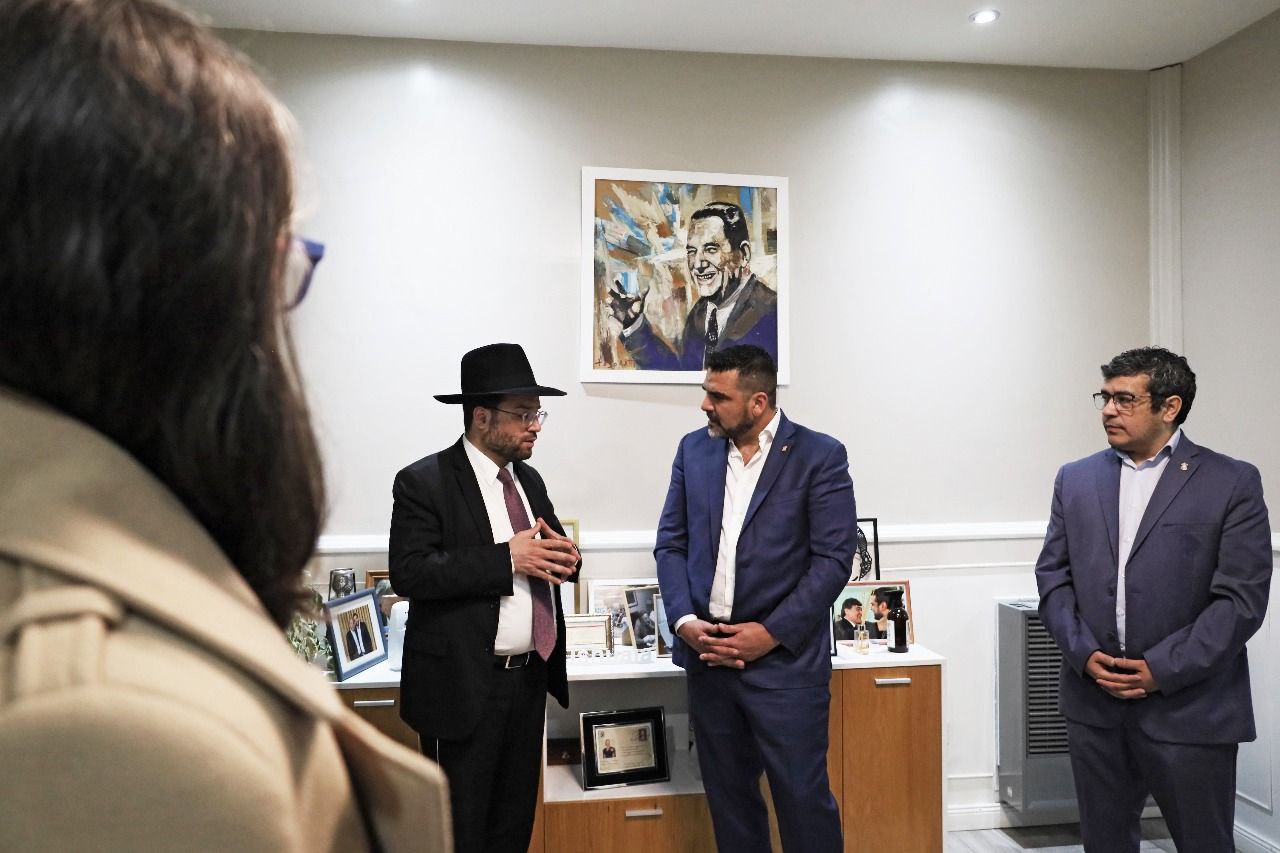 El intendente Walter Vuoto recibió este miércoles al Gran Rabino de AMIA, Eliahu Hamra, quien visitó la ciudad junto a Damián Richard y Elisa Varela, referentes de la comunidad judía en Ushuaia. Durante la reunión dialogaron sobre distintos proyectos en común entre la Municipalidad y la AMIA, vinculados a lo cultural, religioso y comunitario, así como también sobre el predio y el cementerio judío en la ciudad.